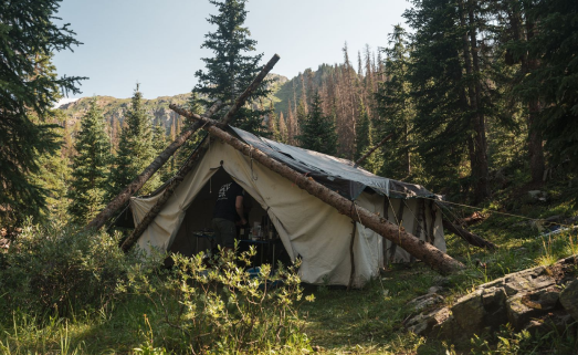 The camp is an established wilderness camp designed for function and comfort within wilderness regulations.