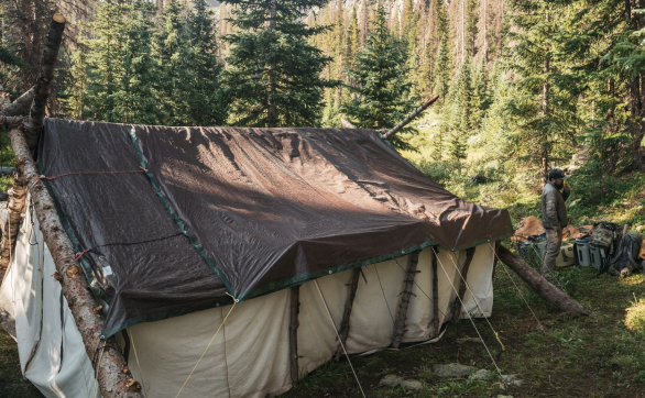 All guided hunts operate from established backcountry camps accessed by horseback. Camps are designed for function and comfort within wilderness regulations and typically include communal areas and separate guest sleeping tents.